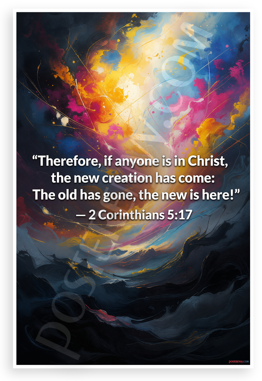 - Premium Print: This PosterEnvy 12x18 inch poster is printed on Durable, Heavy Duty Paper, Designed to last many years. Features 2 Corinthians 5:17 Bible verse on abstract transformation art with vibrant colors