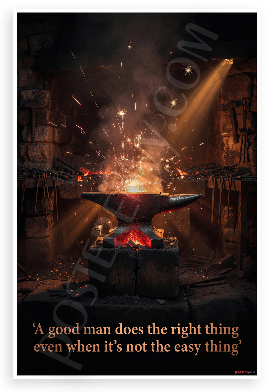 - Premium Print: This PosterEnvy 12x18 inch poster is printed on Durable, Heavy Duty Paper, Designed to last many years. Features dramatic anvil forge scene with inspirational quote on doing the right thing