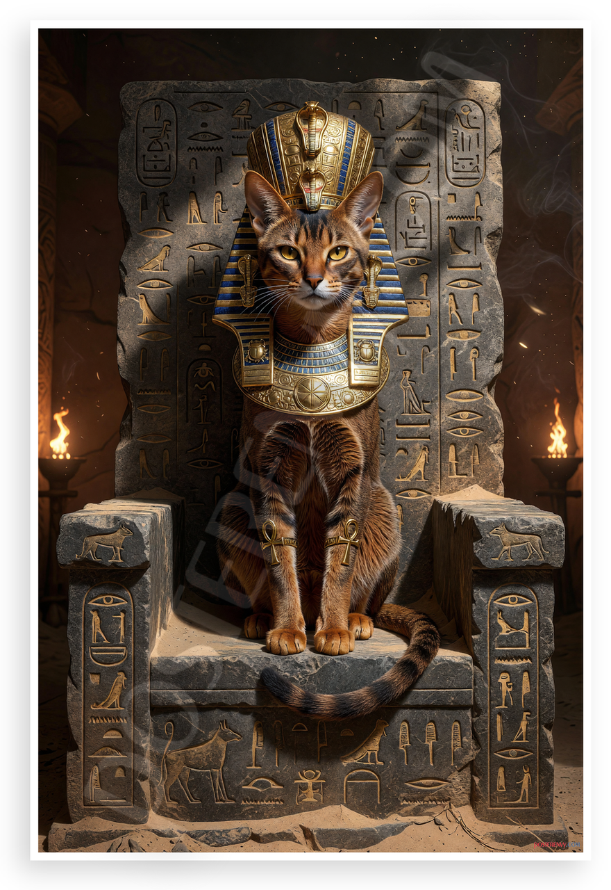 - Premium Print: This PosterEnvy 12x18 inch poster is printed on Durable, Heavy Duty Paper, Designed to last many years. Features Abyssinian cat as Egyptian pharaoh in mystical throne scene with hieroglyphs and gold accents