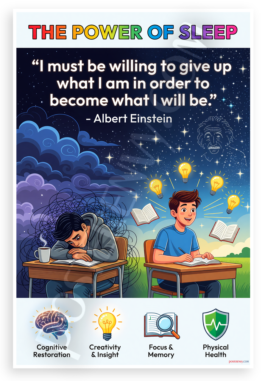 - Perfect Gift Idea: Motivational for students, teachers, parents promoting sleep importance; great for back to school, health awareness, dorm decor, wellness enthusiasts, Einstein fans
