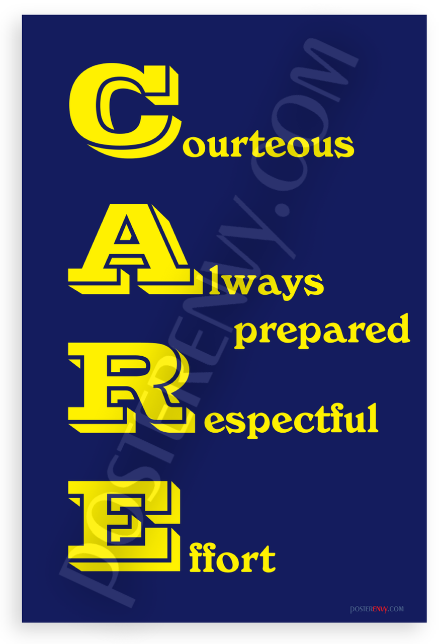 - Premium Print: This PosterEnvy 12x18 inch poster is printed on Durable, Heavy Duty Paper, Designed to last many years. Features C.A.R.E acronym with Courteous Always Respectful Effort message in striking yellow on navy.