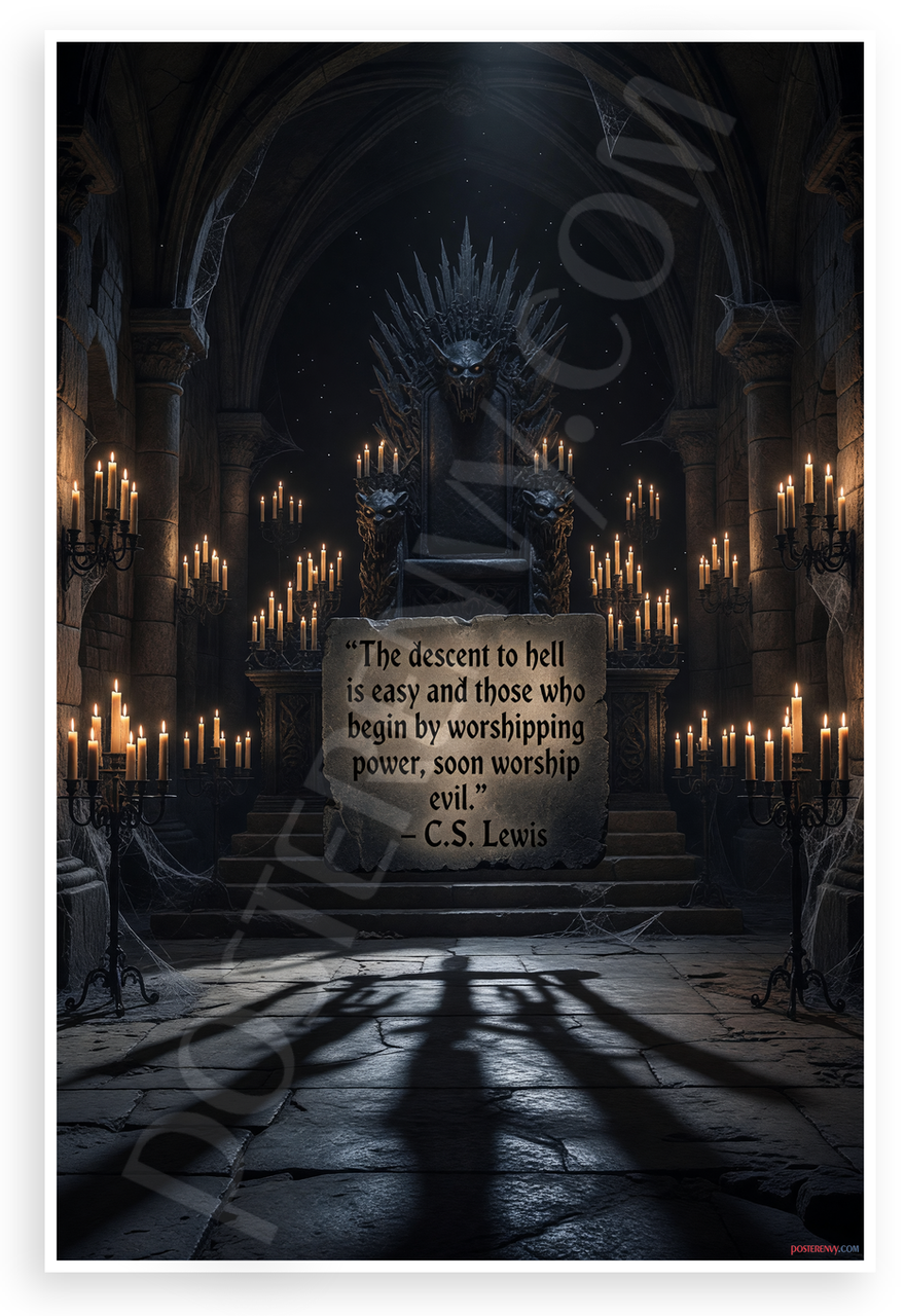 - Premium Print: This PosterEnvy 12x18 inch poster is printed on Durable, Heavy Duty Paper, Designed to last many years. Features C.S. Lewis descent to hell quote in gothic throne room scene with candles and shadows.