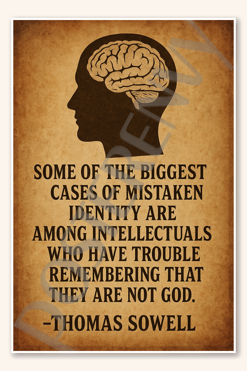 Some of the biggest cases of mistaken identity are among intellectuals who have trouble remembering that they are not God - Thomas Sowell Poster - 18 inch x 12 inch