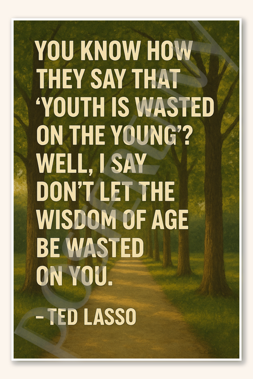 You know how they say that youth is wasted on the young Well I say don't let the wisdom of age be wasted on you - Ted Lasso Poster - 18 inch x 12 inch