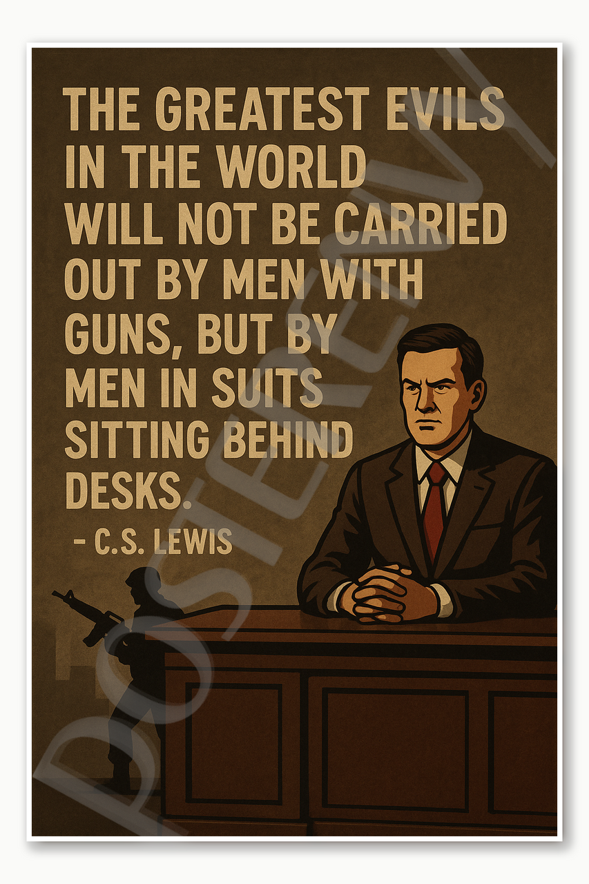The greatest evils in the world will not be carried out by men with guns but by men in suits sitting behind desks C S Lewis Poster - 18 inch x 12 inch