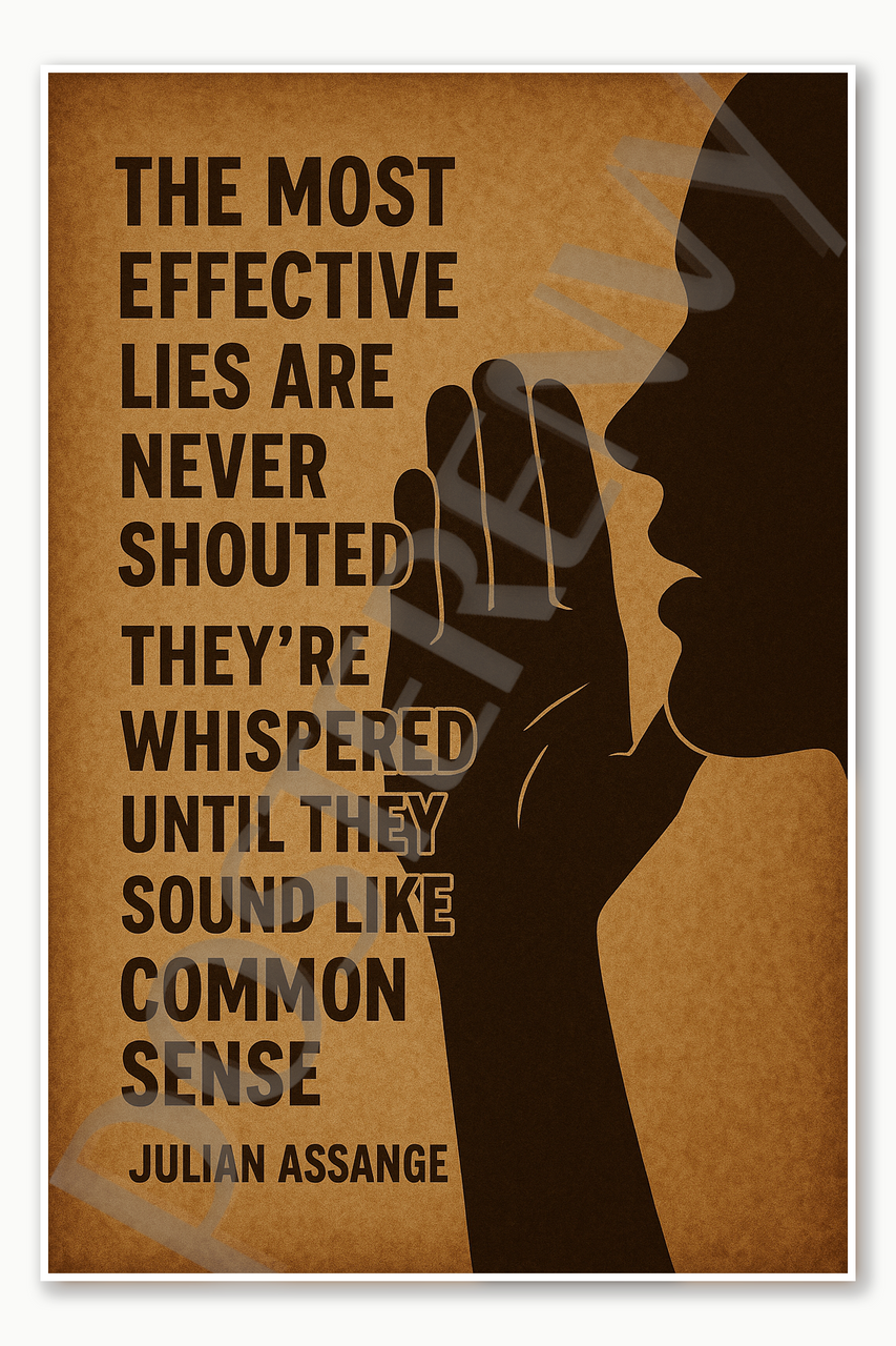 Click the button below to add the The most effective lies are never shouted Theyre whispered until they sound like common sense Julian Assange Poster - 18 inch x 12 inch to your wish list.