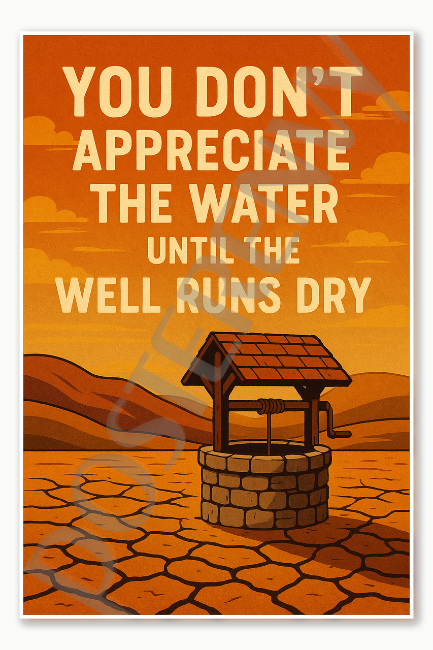 Click the button below to add the You dont appreciate the water until the well runs dry Poster - 18 inch x 12 inch to your wish list.