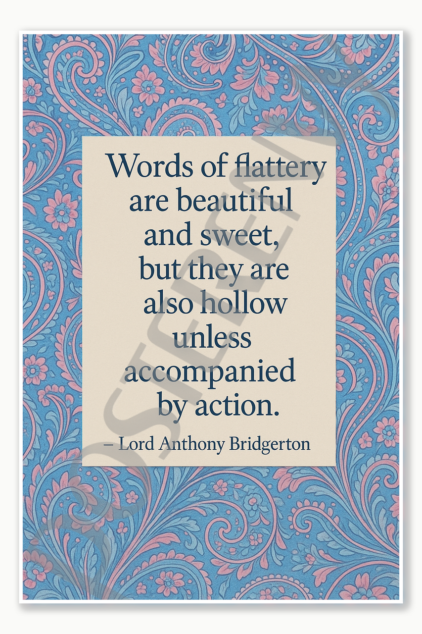 Words of flattery are beautiful and sweet but they are also hollow unless accompanied by action — Lord Anthony Bridgerton 1 Poster - 18 inch x 12 inch