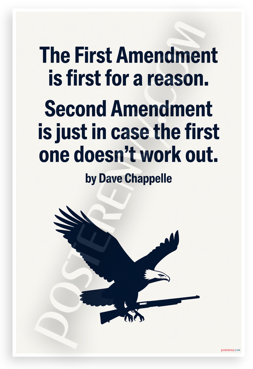 - Premium Print: This PosterEnvy 12x18 inch poster is printed on Durable, Heavy Duty Paper, Designed to last many years. Features Dave Chappelle quote on First Amendment and Second Amendment with eagle and shotgun silhouette