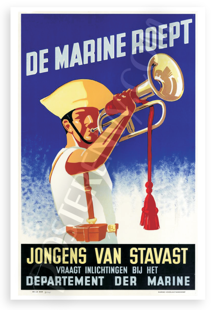 - Premium Print: This PosterEnvy 12x18 inch poster is printed on Durable, Heavy Duty Paper, Designed to last many years. Features vintage Dutch navy recruitment design with bugle player