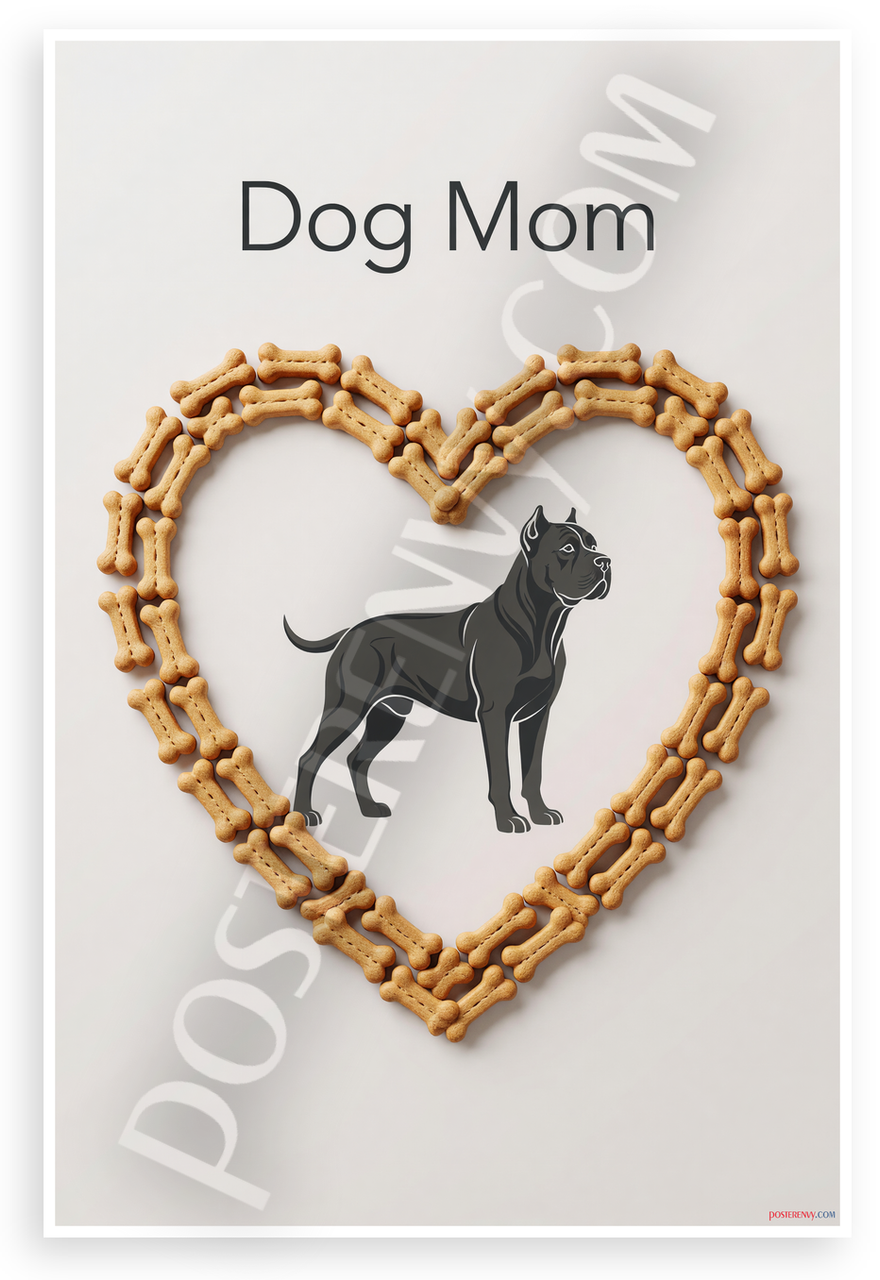 - Premium Print: This PosterEnvy 12x18 inch poster is printed on Durable, Heavy Duty Paper, Designed to last many years. Features Dog Mom text, Cane Corso silhouette, dog bone heart frame