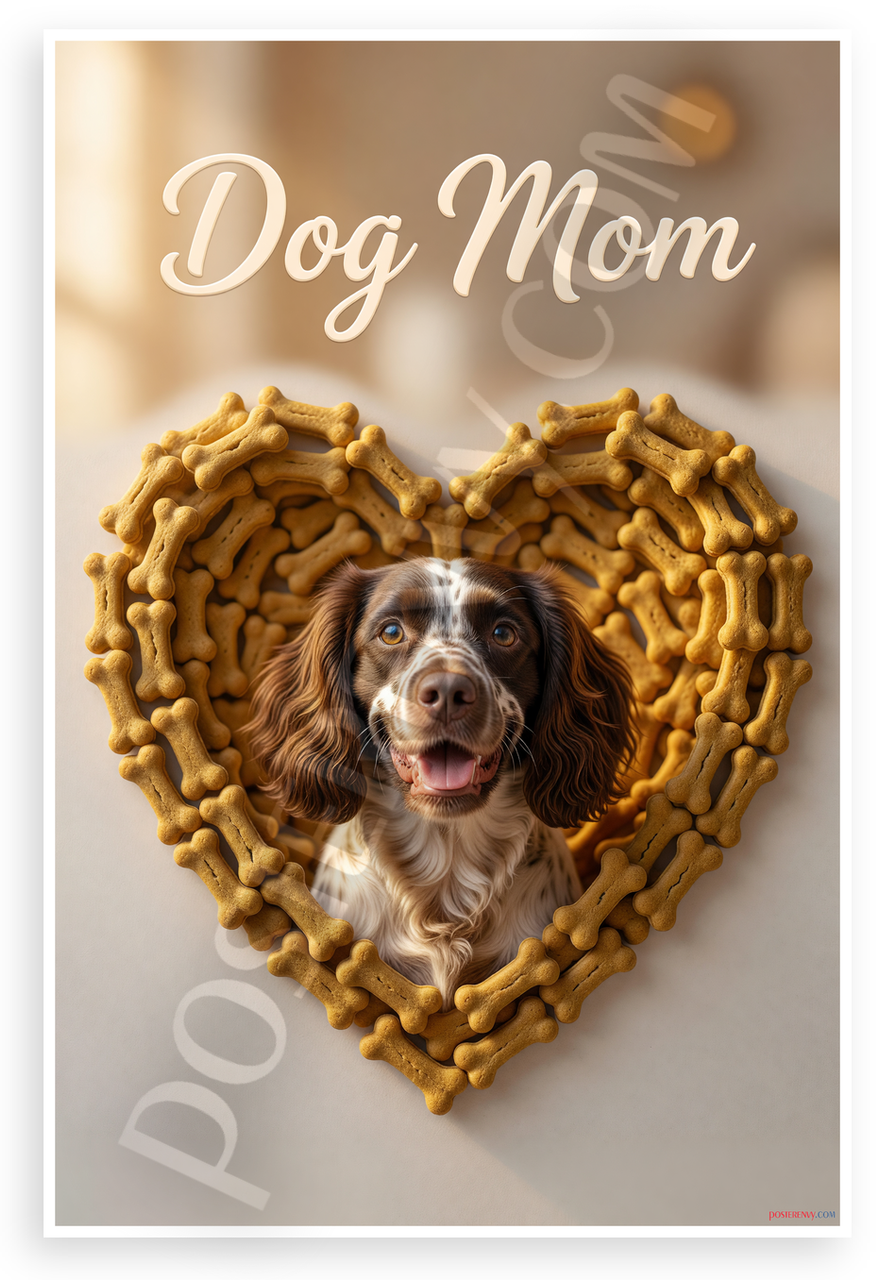 - Premium Print: This PosterEnvy 12x18 inch poster is printed on Durable, Heavy Duty Paper, Designed to last many years. Showcases English Springer Spaniel in dog bone heart with Dog Mom theme