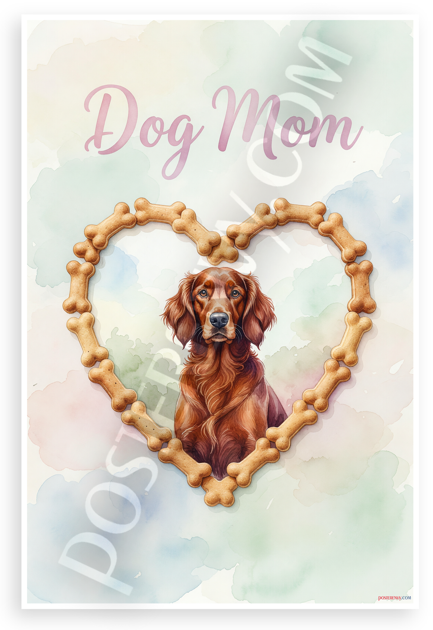 - Premium Print: This PosterEnvy 12x18 inch poster is printed on Durable, Heavy Duty Paper, Designed to last many years featuring Dog Mom Irish Setter in bone heart frame