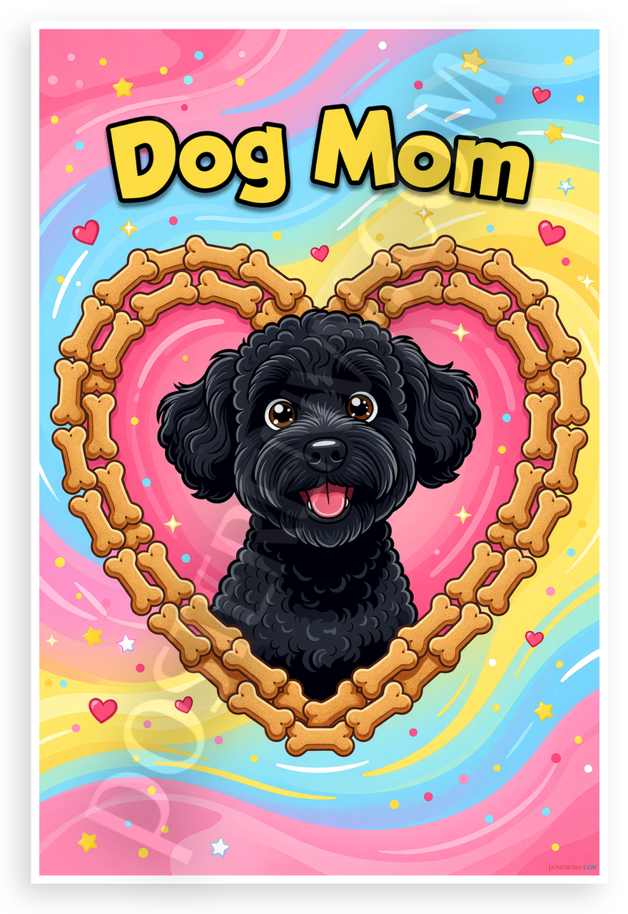 - Premium Print: This PosterEnvy 12x18 inch poster is printed on Durable, Heavy Duty Paper, Designed to last many years. Features playful Dog Mom design with Portuguese Water Dog in bone heart frame