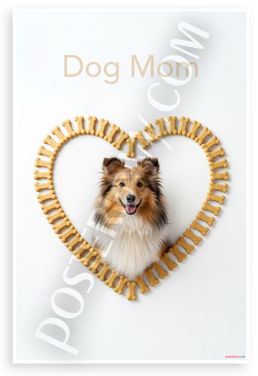 - Premium Print: This PosterEnvy 12x18 inch poster is printed on Durable, Heavy Duty Paper, Designed to last many years. Features adorable Shetland Sheepdog in bone treat heart frame with Dog Mom text