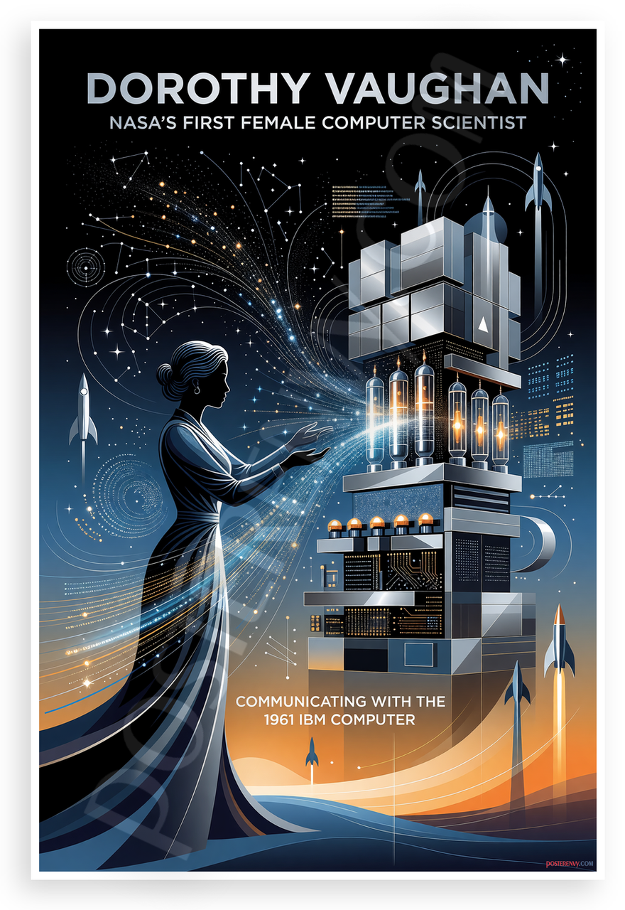 - Premium Print: This PosterEnvy 12x18 inch poster is printed on Durable, Heavy Duty Paper, Designed to last many years. Features Dorothy Vaughan with NASA IBM computer rockets in abstract style