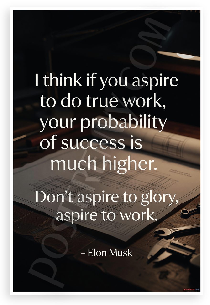 - Premium Print: This PosterEnvy 12x18 inch poster is printed on Durable, Heavy Duty Paper, Designed to last many years. Features Elon Musk quote on aspiring to true work over glory