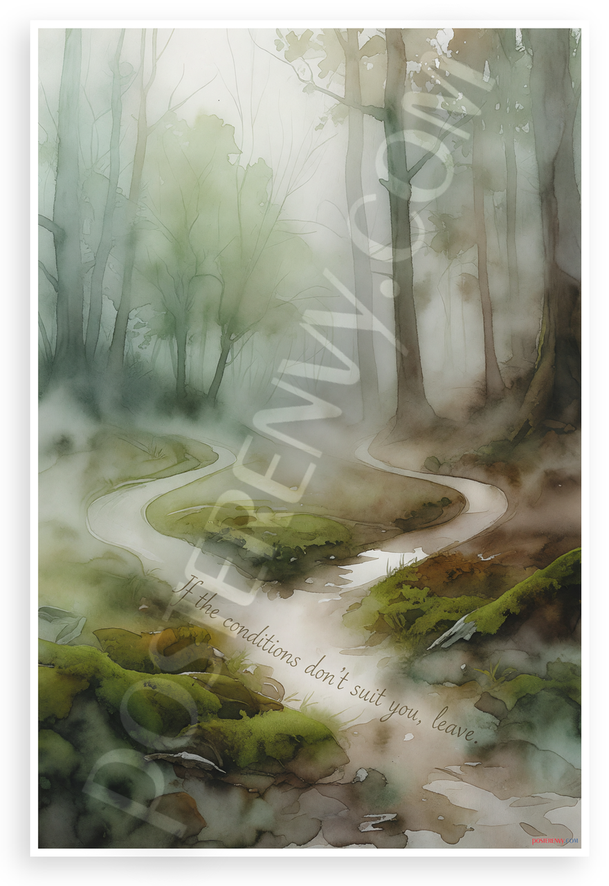 This 12x18 inch poster is printed on premium, durable paper. Proudly Made in the USA by PosterEnvy. The perfect size for any room. PosterEnvy is a family owned business, delivering top-notch posters around the world for over 20 years. Our posters are designed to last — they won't fade or pucker for years of enjoyment. Every poster features crisp, vivid artwork. We are a solar powered company. This contemplative watercolor-style artwork depicts diverging paths winding through a misty forest with soft greens, browns, and ethereal fog, paired with Epictetus' timeless Stoic wisdom on choice and resilience.