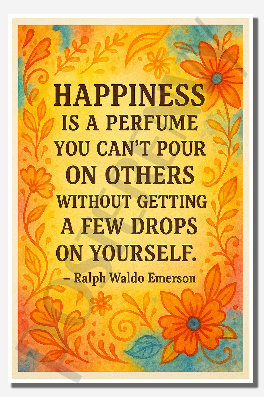Happiness is a perfume you can't pour on others without getting a few drops on your self - Ralph Waldo Emerson - Inspirational Poster - 18 inch x 12 inch
