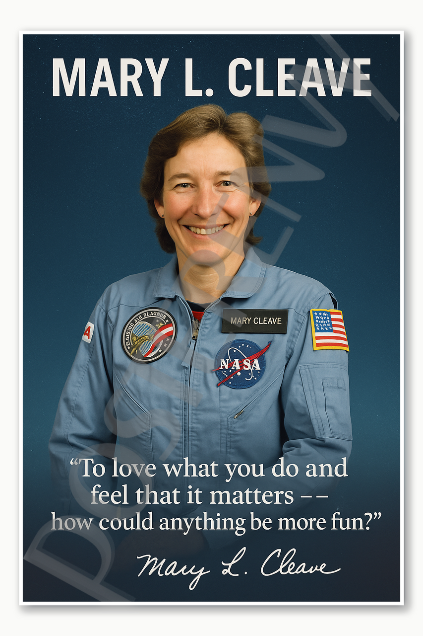Mary L Cleave Famous Woman Female American NASA Astronaut Space Inspirational Hero love what you do Poster - 18 inch x 12 inch
