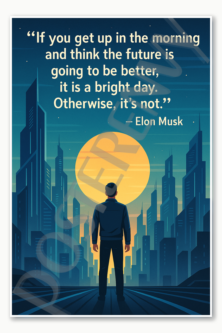If you get up in the morning and think the future is going to be better it is a bright day Elon Musk Poster - 18 inch x 12 inch