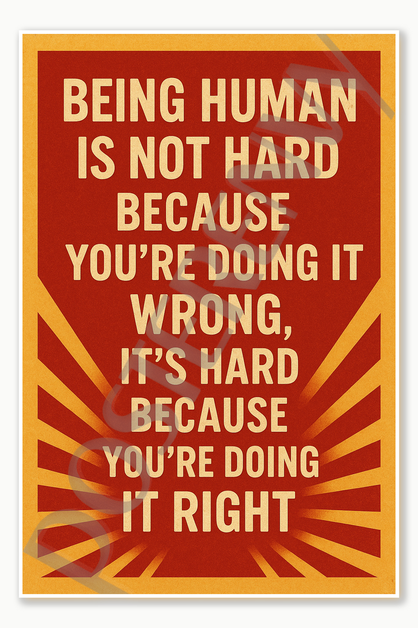 Being human is not hard because you're doing it wrong it's hard because you're doing it right Poster - 18 inch x 12 inch