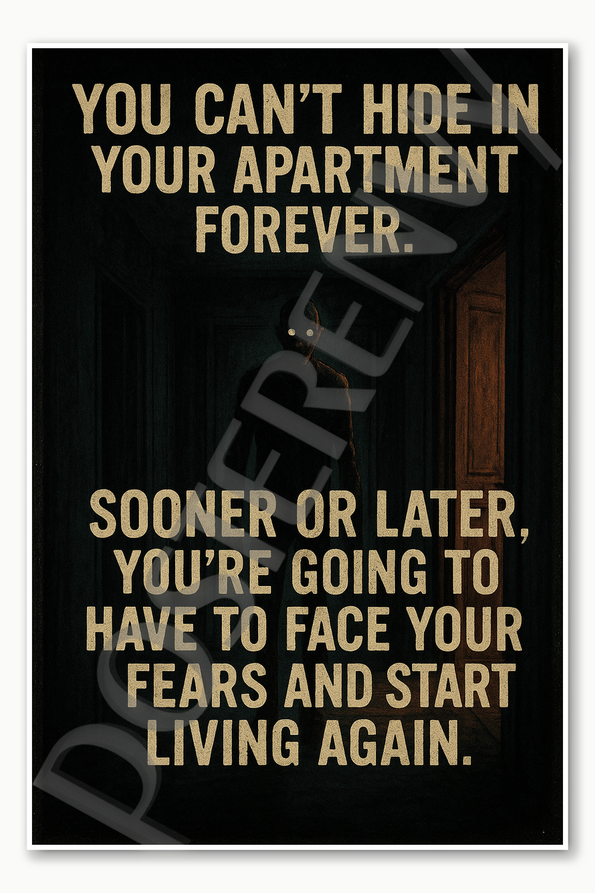 You can't hide in your apartment forever Sooner or later you're going to have to face your fears and start living again Poster - 18 inch x 12 inch