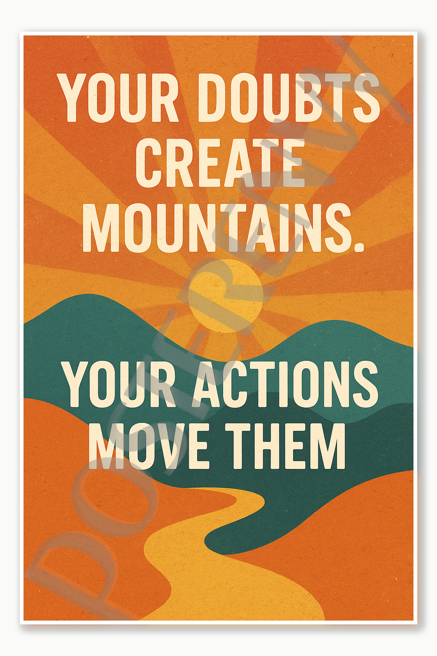 Your doubts create mountains Your actions move them - 5 Poster - 18 inch x 12 inch