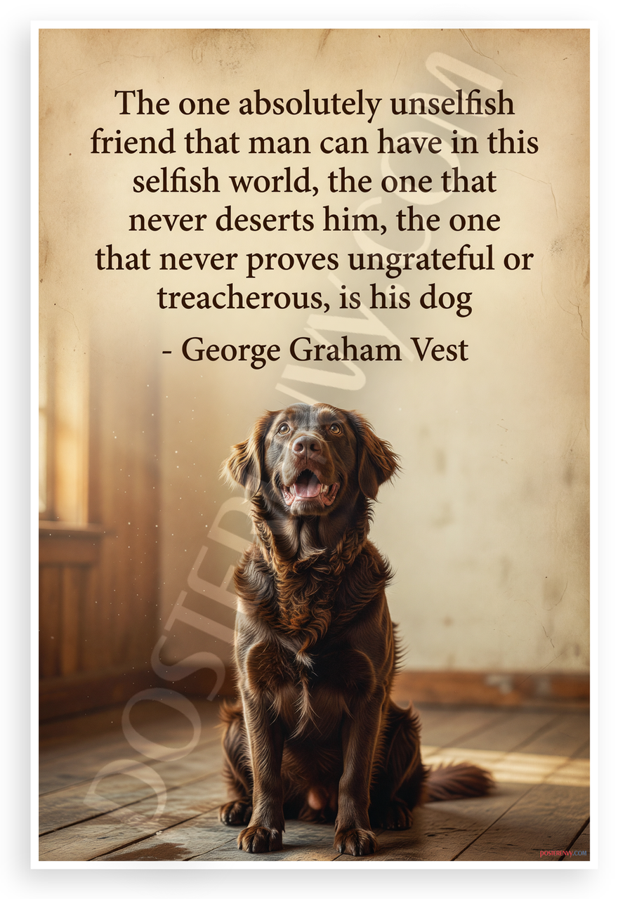 - Heartwarming Dog Portrait: Vintage-style image of a smiling Chesapeake Bay Retriever in warm affectionate mood with full George Graham Vest quote on loyalty. Creates cozy, nostalgic vibe for living rooms, dens, or pet spaces