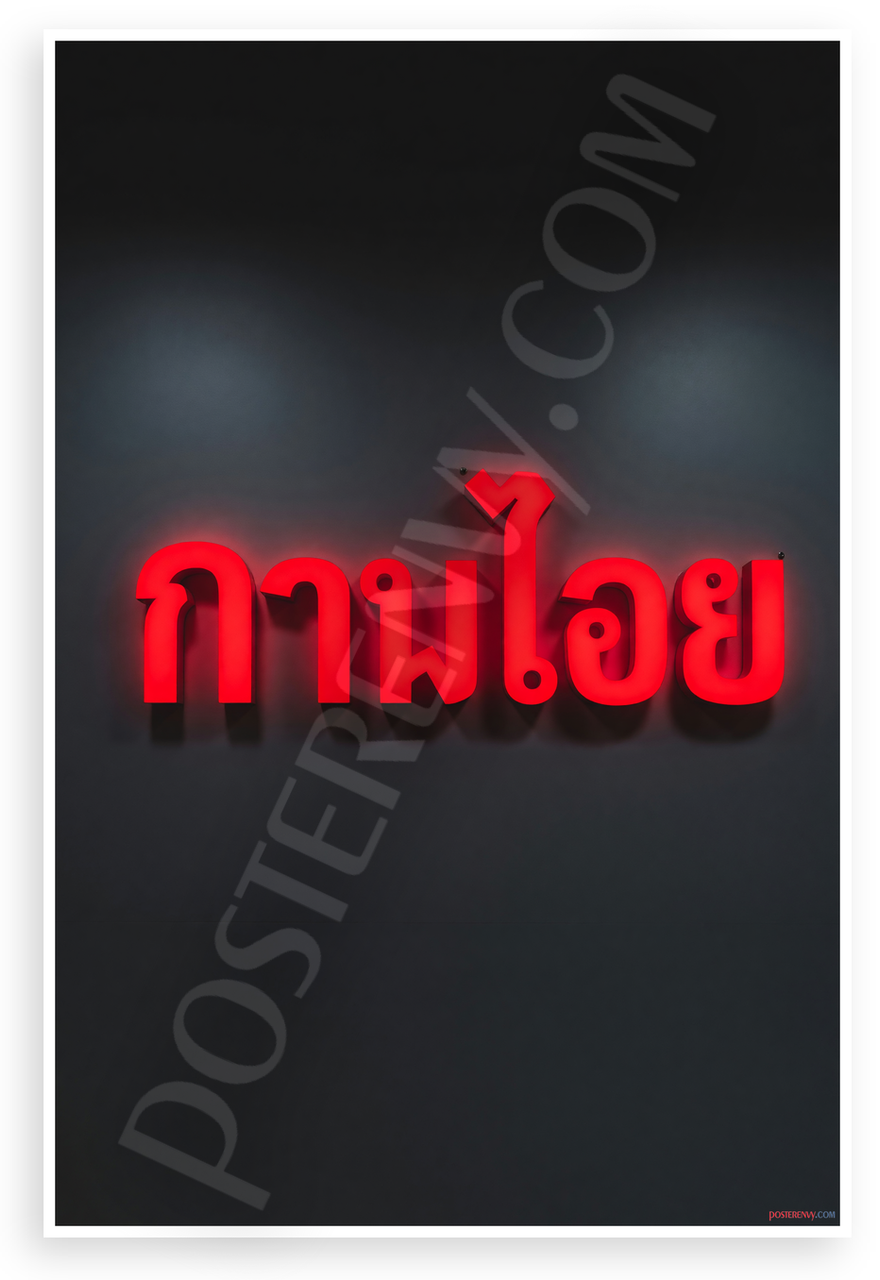 This 12x18 inch poster is printed on premium, durable paper. Proudly Made in the USA by PosterEnvy. The perfect size for any room. PosterEnvy is a family owned business, delivering top-notch posters around the world for over 20 years. Our posters are designed to last — they won't fade or pucker for years of enjoyment. Every poster features crisp, vivid artwork. We are a solar powered company. This modern wall art captures a glowing red neon-style Thai 'ทางออก' emergency exit sign against a dark background, evoking urgency and safety. Ideal for Thai-themed spaces, restaurants, or novelty decor.