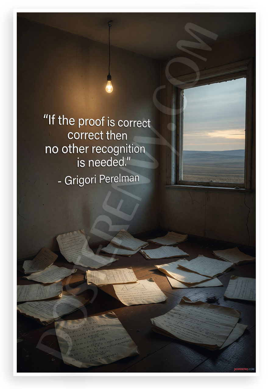 - Premium Print: This PosterEnvy 12x18 inch poster is printed on Durable, Heavy Duty Paper, Designed to last many years. Features Grigori Perelman quote on mathematical proof and recognition in contemplative room scene with equations.