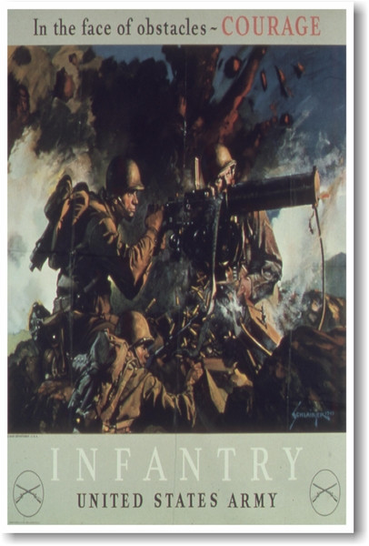 Click the button below to add the In the Face of Obstacles - Courage - Infantry US Army - NEW Vintage Reprint Poster to your wish list.