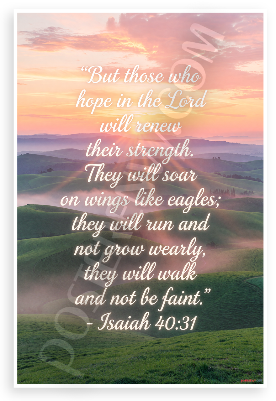 - Premium Print: This PosterEnvy 12x18 inch poster is printed on Durable, Heavy Duty Paper, Designed to last many years. Features Isaiah 40:31 Bible quote on sunrise hills landscape