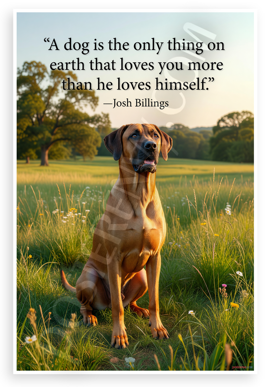- Premium Print: This PosterEnvy 12x18 inch poster is printed on Durable, Heavy Duty Paper, Designed to last many years. Features Josh Billings quote on Rhodesian Ridgeback loyalty in serene field setting