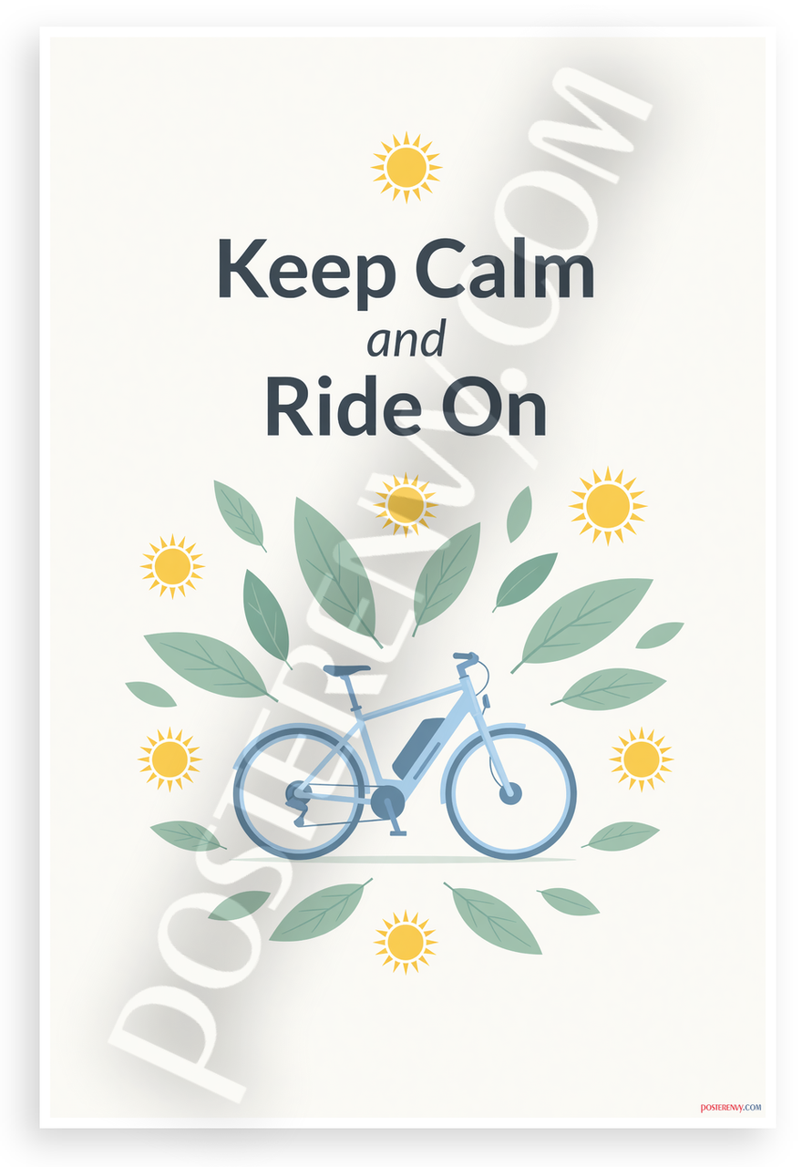 - Premium Print: This PosterEnvy 12x18 inch poster is printed on Durable, Heavy Duty Paper, Designed to last many years. Features Keep Calm and Ride On e-bike with leaves and suns eco theme