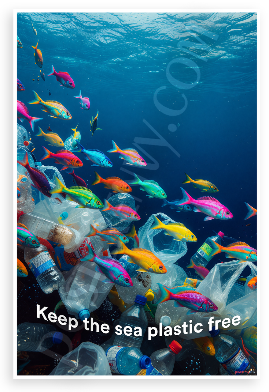 - Premium Print: This PosterEnvy 12x18 inch poster is printed on Durable, Heavy Duty Paper, Designed to last many years. Features dynamic scene of colorful fish amid ocean plastic pollution with Keep the Sea Plastic Free message