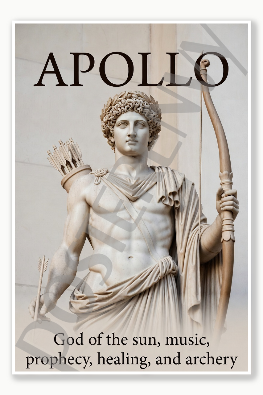 Apollo God of the sun music prophecy healing and archery Poster - 18 inch x 12 inch