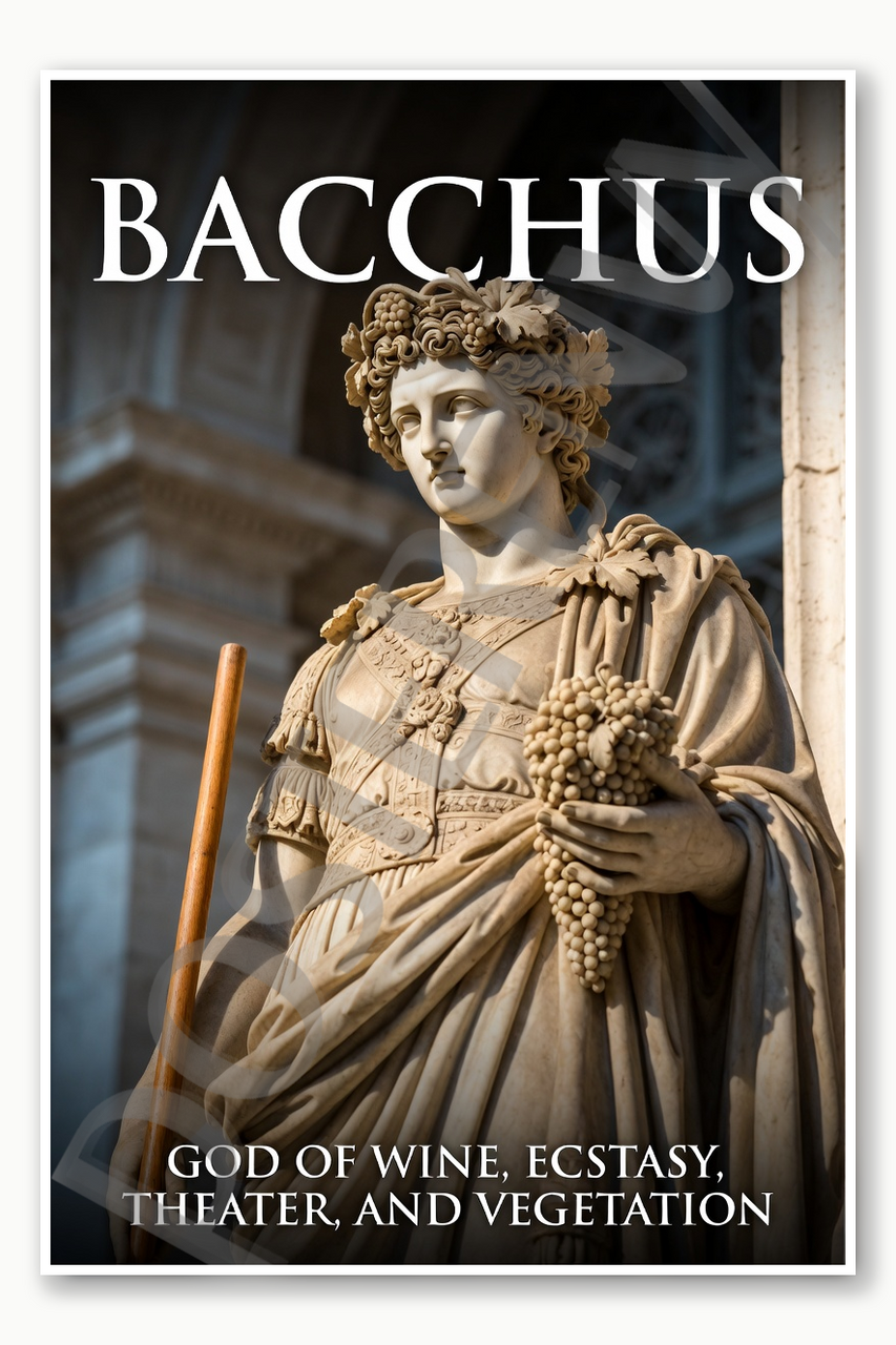 Bacchus God of wine ecstasy theater and vegetation Poster - 18 inch x 12 inch