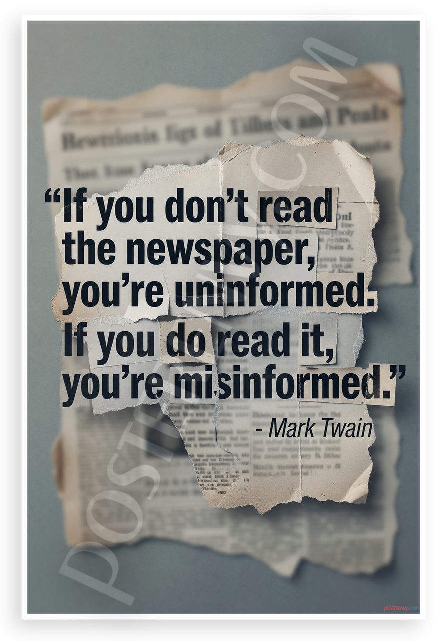 - Premium Print: This PosterEnvy 12x18 inch poster is printed on Durable, Heavy Duty Paper, Designed to last many years. Features Mark Twain newspaper quote with torn newsprint design