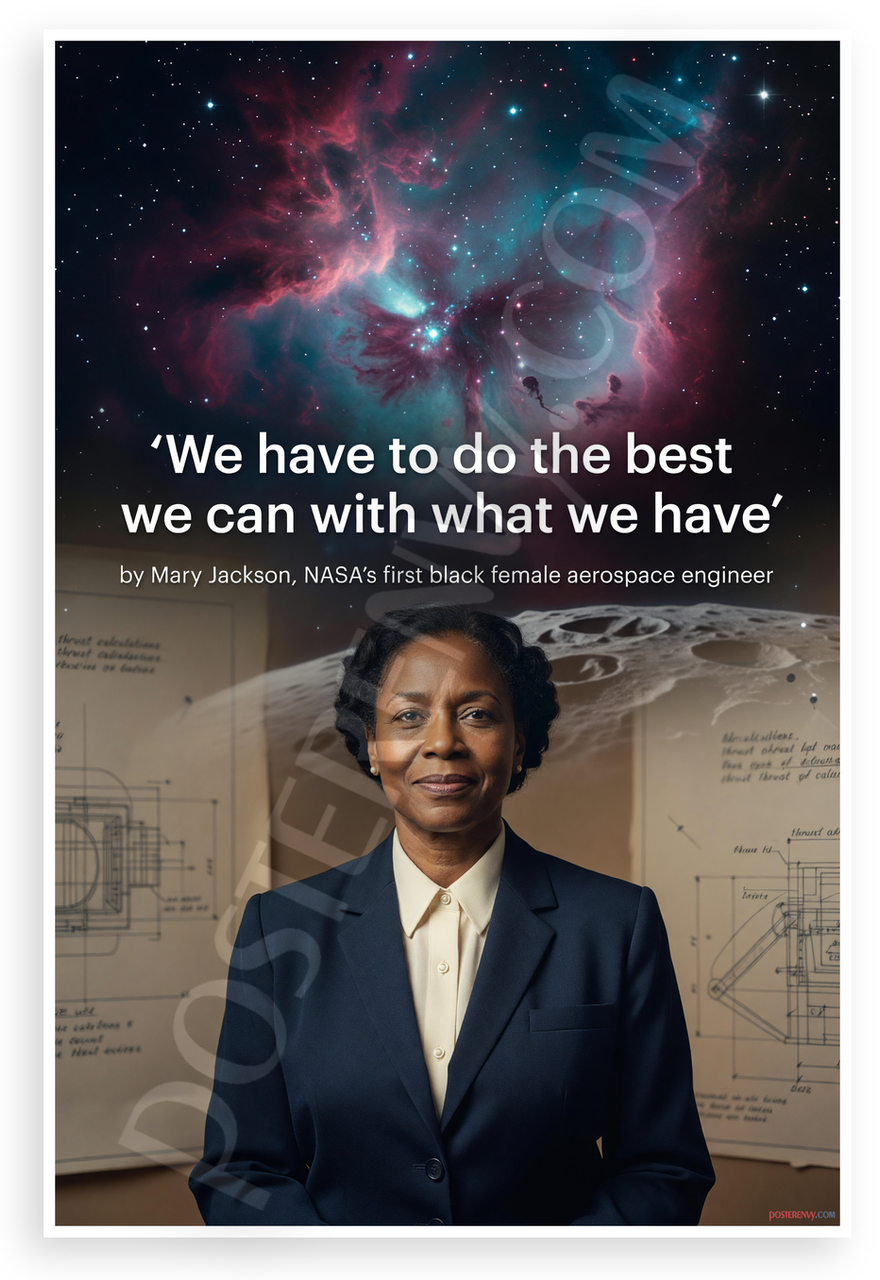 - Premium Print: This PosterEnvy 12x18 inch poster is printed on Durable, Heavy Duty Paper, Designed to last many years. Showcases Mary Jackson quote, NASA aerospace engineer portrait, space nebula, engineering blueprints