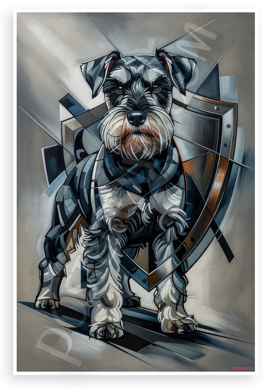 - Premium Print: This PosterEnvy 12x18 inch poster is printed on Durable, Heavy Duty Paper, Designed to last many years. Features a fierce Miniature Schnauzer guardian with shield in abstract style
