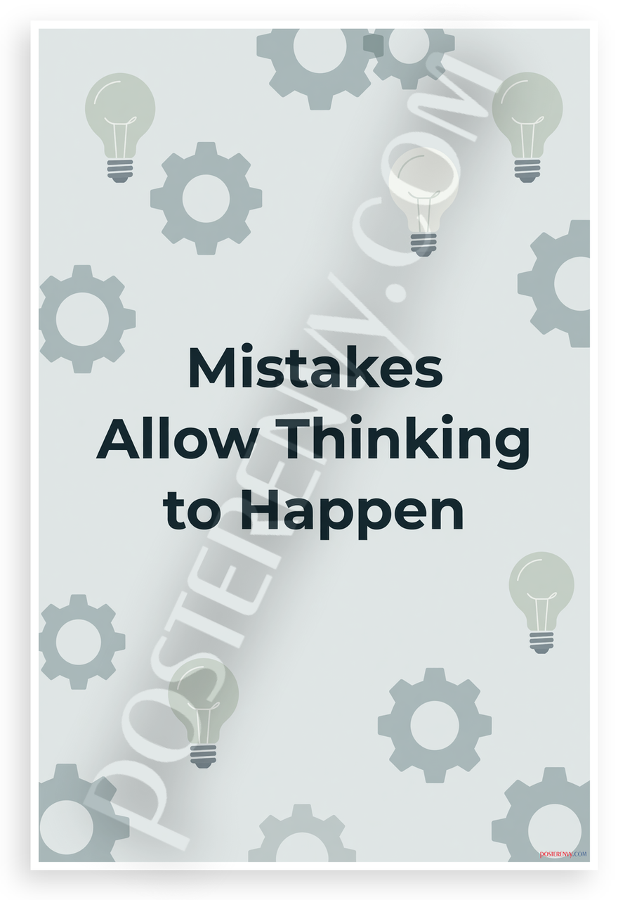 - Premium Print: This PosterEnvy 12x18 inch poster is printed on Durable, Heavy Duty Paper, Designed to last many years. Features 'Mistakes Allow Thinking to Happen' quote with gears and lightbulbs innovation theme