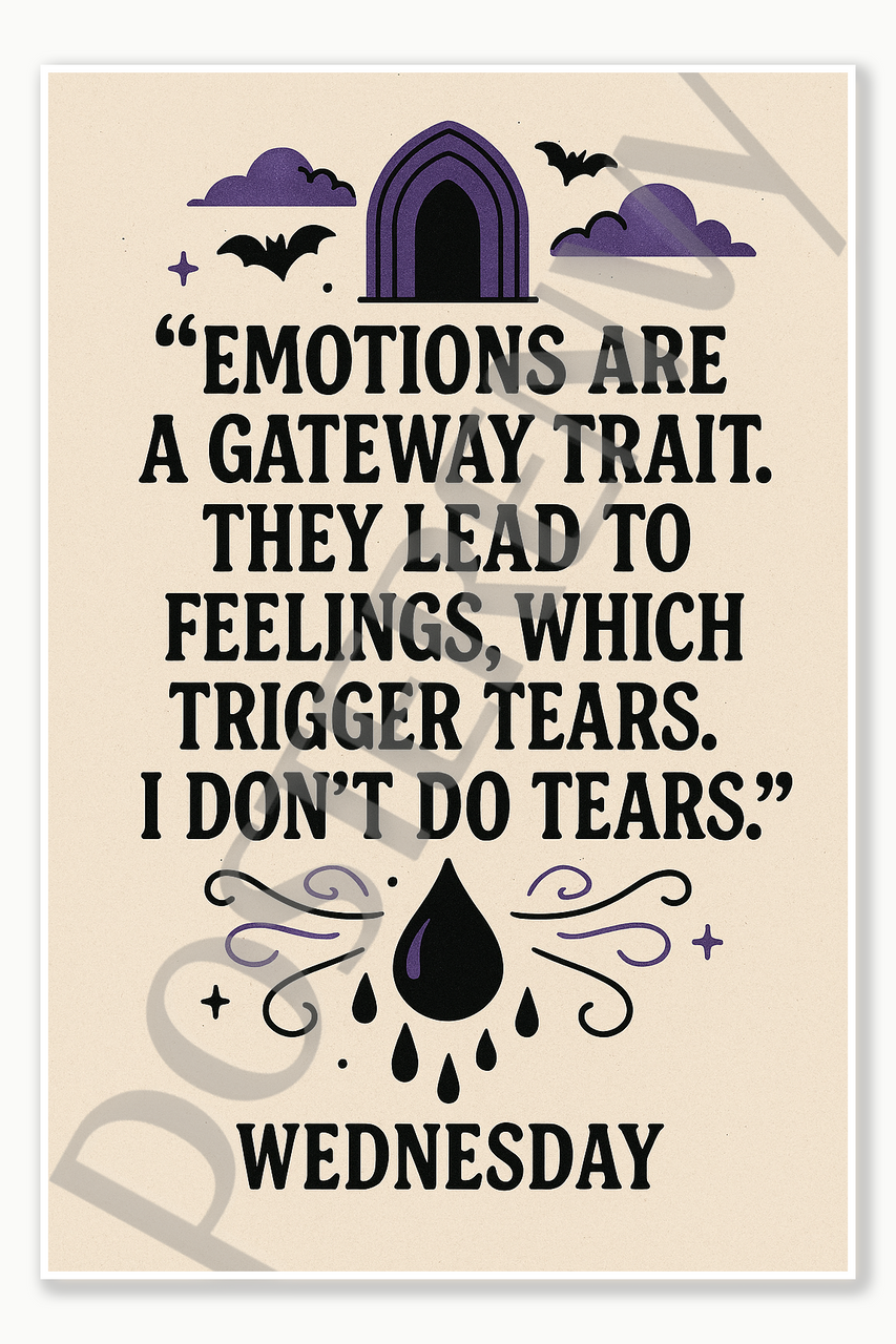 Emotions are a gateway trait They lead to feelings which trigger tears I don't do tears — Wednesday Poster - 18 inch x 12 inch
