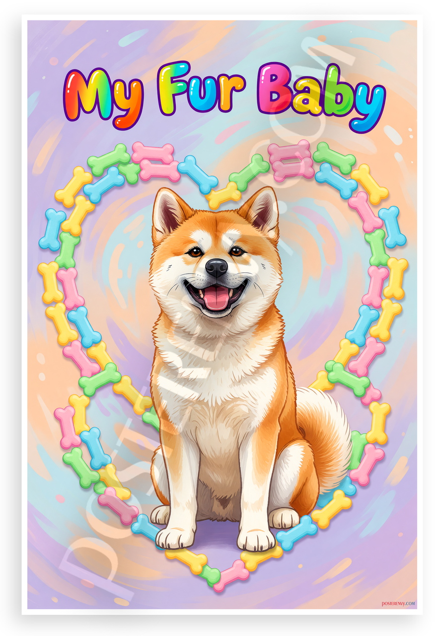 - Premium Print: This PosterEnvy 12x18 inch poster is printed on Durable, Heavy Duty Paper, Designed to last many years. Features cheerful Akita dog with 'My Fur Baby' text and colorful bone heart border