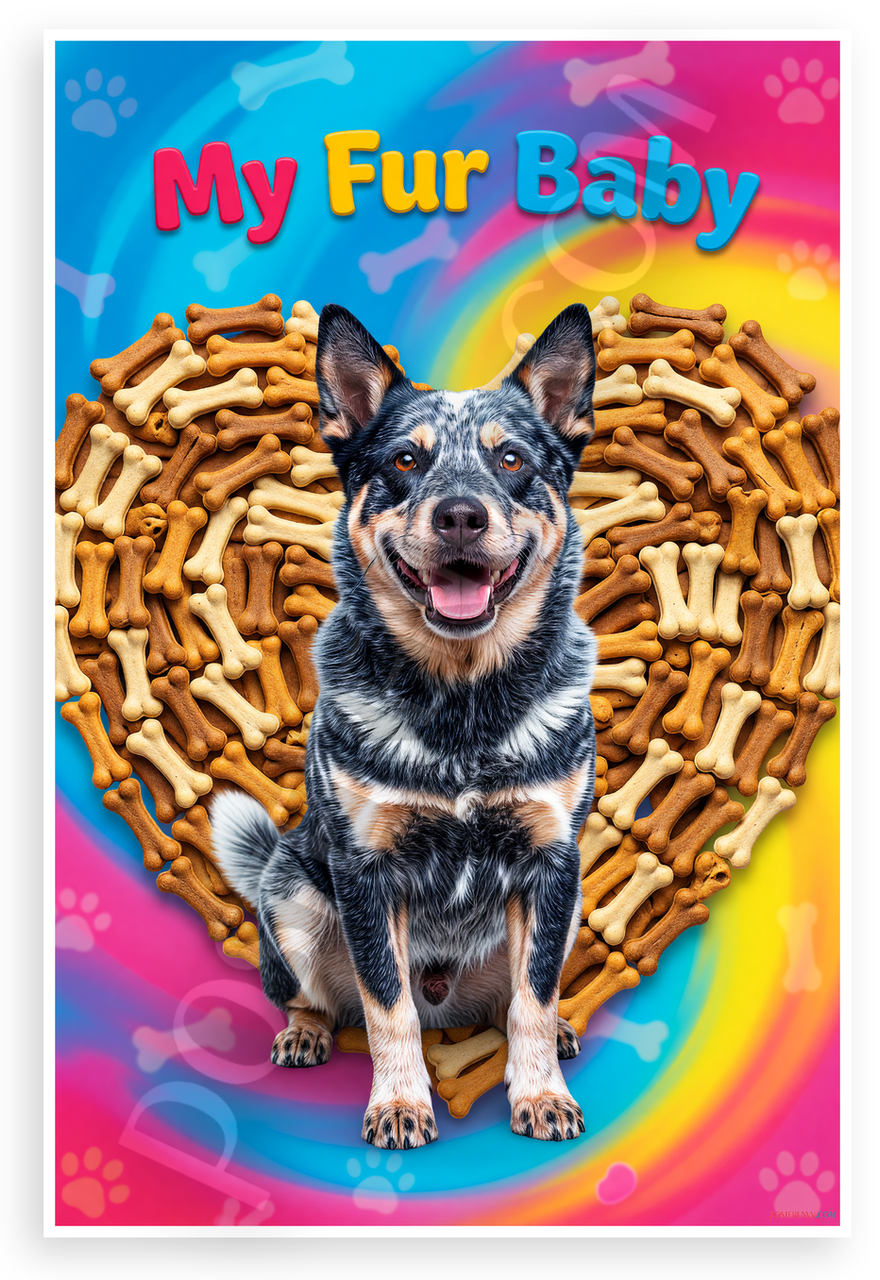- Premium Print: This PosterEnvy 12x18 inch poster is printed on Durable, Heavy Duty Paper, Designed to last many years. Features Australian Cattle Dog in bone treats heart with My Fur Baby text