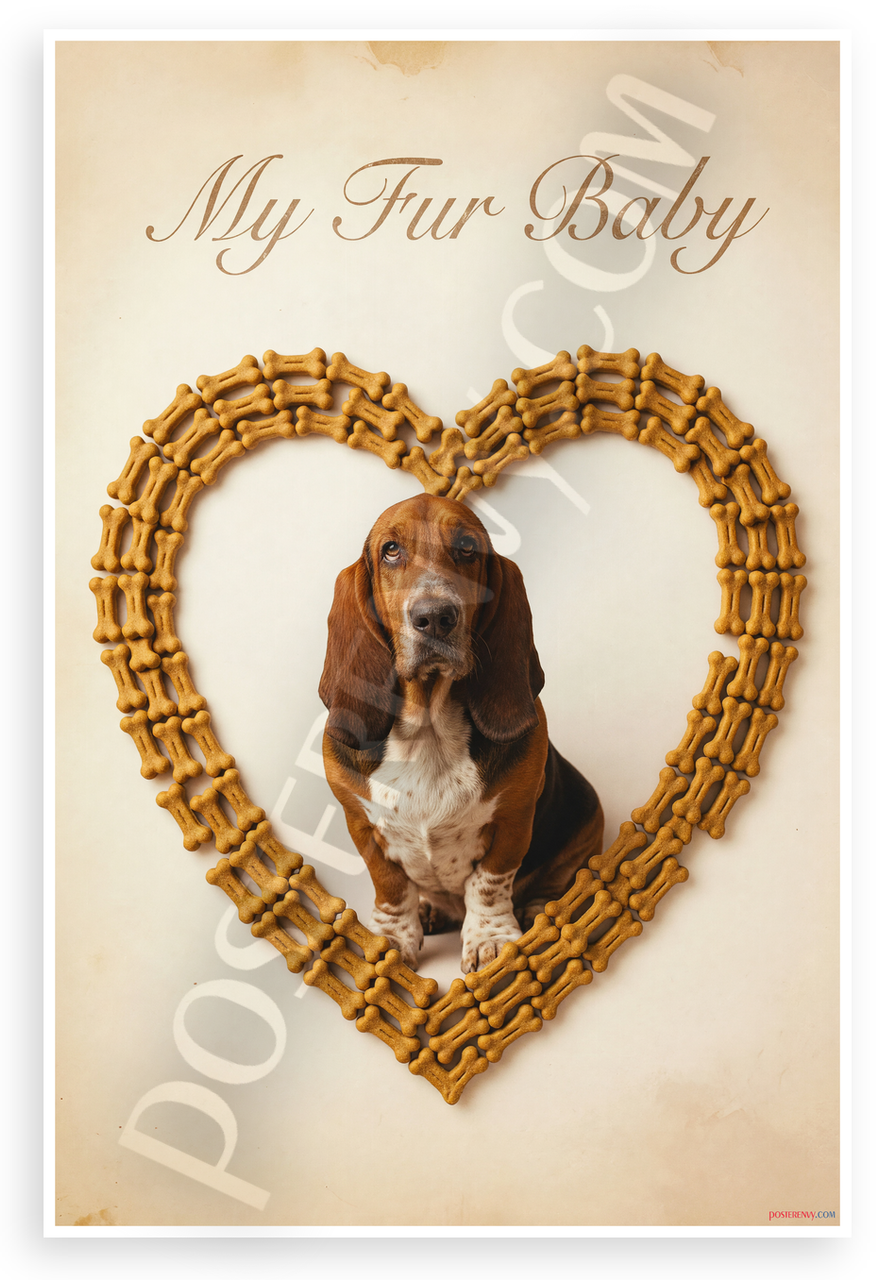 - Premium Print: This PosterEnvy 12x18 inch poster is printed on Durable, Heavy Duty Paper, Designed to last many years. Features adorable basset hound in dog bone heart frame with My Fur Baby text in vintage style