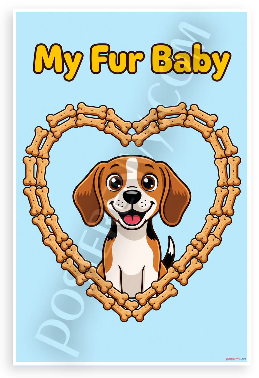 - Premium Print: This PosterEnvy 12x18 inch poster is printed on Durable, Heavy Duty Paper, Designed to last many years. Features cartoon Beagle in dog bone heart with My Fur Baby text