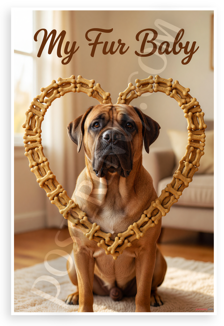 - Premium Print: This PosterEnvy 12x18 inch poster is printed on Durable, Heavy Duty Paper, Designed to last many years. Features realistic Bullmastiff in bone heart frame with My Fur Baby text