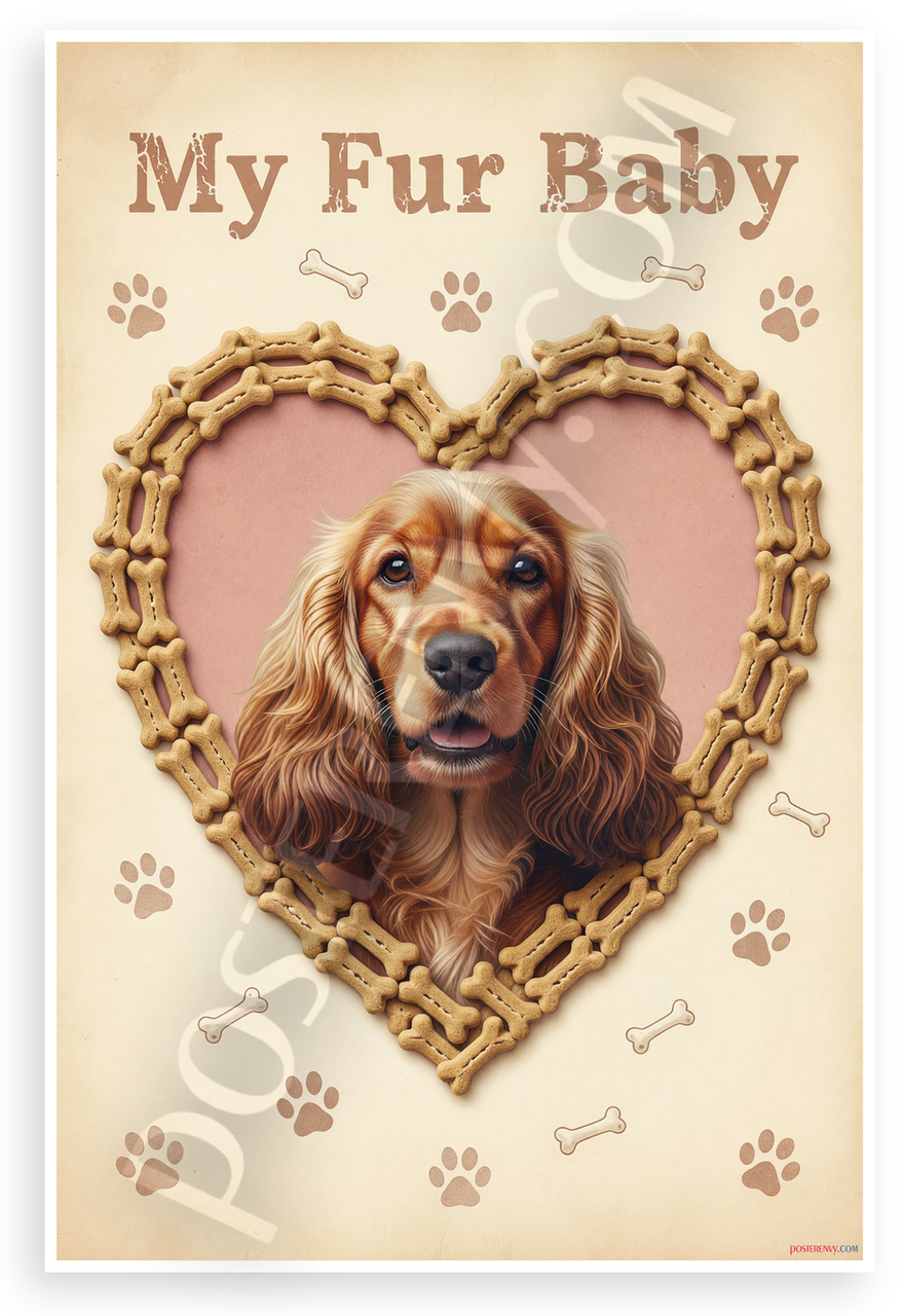 - Premium Print: This PosterEnvy 12x18 inch poster is printed on Durable, Heavy Duty Paper, Designed to last many years. Showcases Cocker Spaniel in bone heart frame with My Fur Baby text