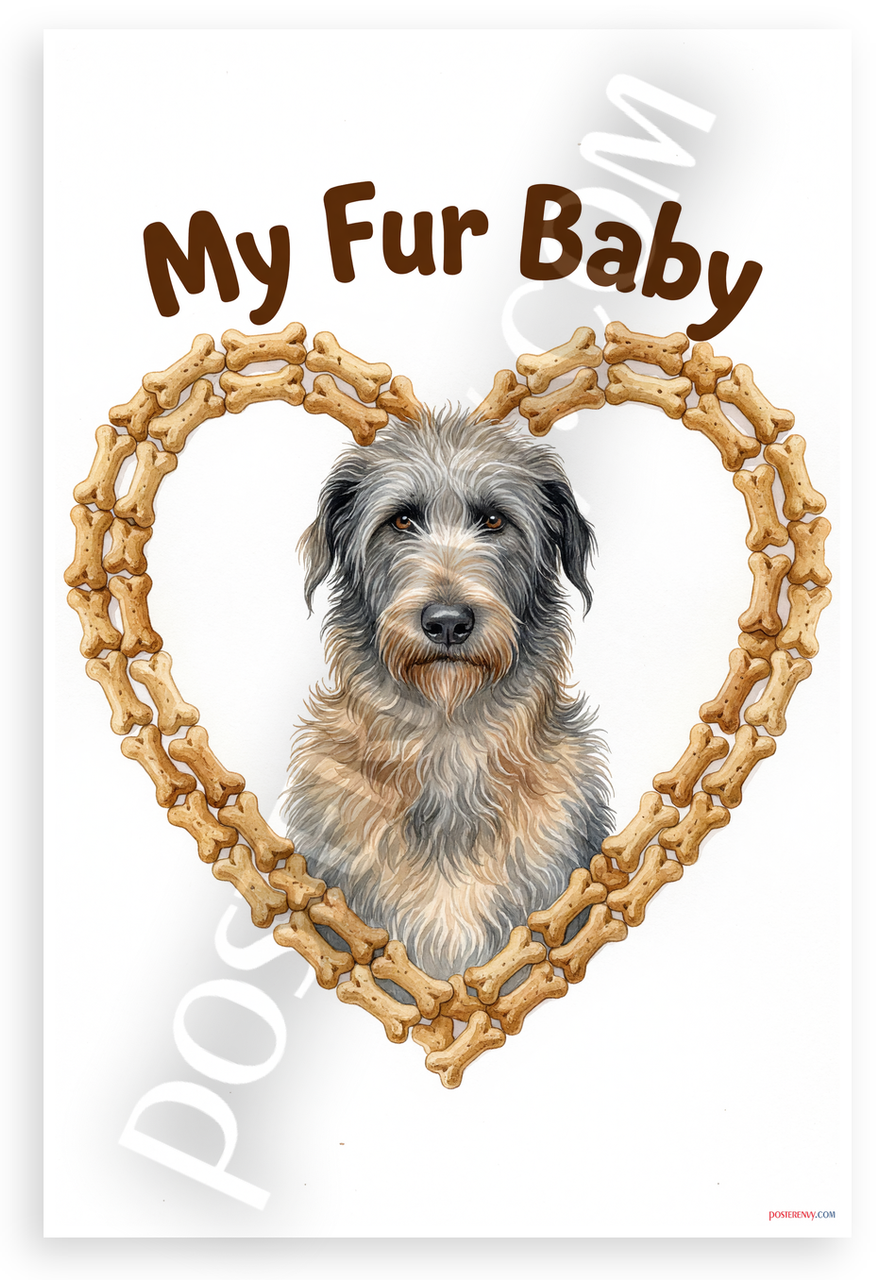 - Premium Print: This PosterEnvy 12x18 inch poster is printed on Durable, Heavy Duty Paper, Designed to last many years featuring Irish Wolfhound in dog bone heart frame with My Fur Baby text